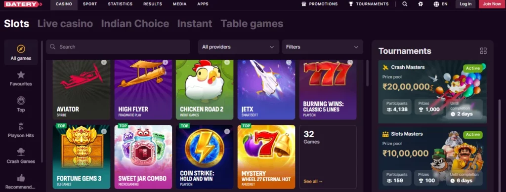 If slot machines are your main interest, Batery has plenty to keep you entertained. The collection includes Megaways releases, progressive jackpots, and new launches with high-quality visuals and sound. You can even test most of them in demo mode before wagering real money. Some highlights include: