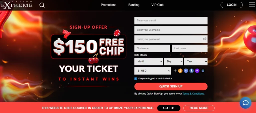 Signing up with Casino Extreme doesn’t take much effort. Here’s basically what you do:
