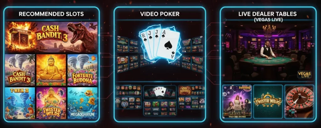The game collection itself is smaller than what you’ll find elsewhere, but it benefits from focus. The partnership with SpinLogic Gaming and Vegas Live means the games are consistent in quality, even if the selection is limited.